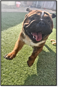 Favorite Activities: I’m here for a good time! Which includes rough housing with my friends, chewing on my bone & using my people as bowling pins!! (Don’t worry, they think it’s fun!)
